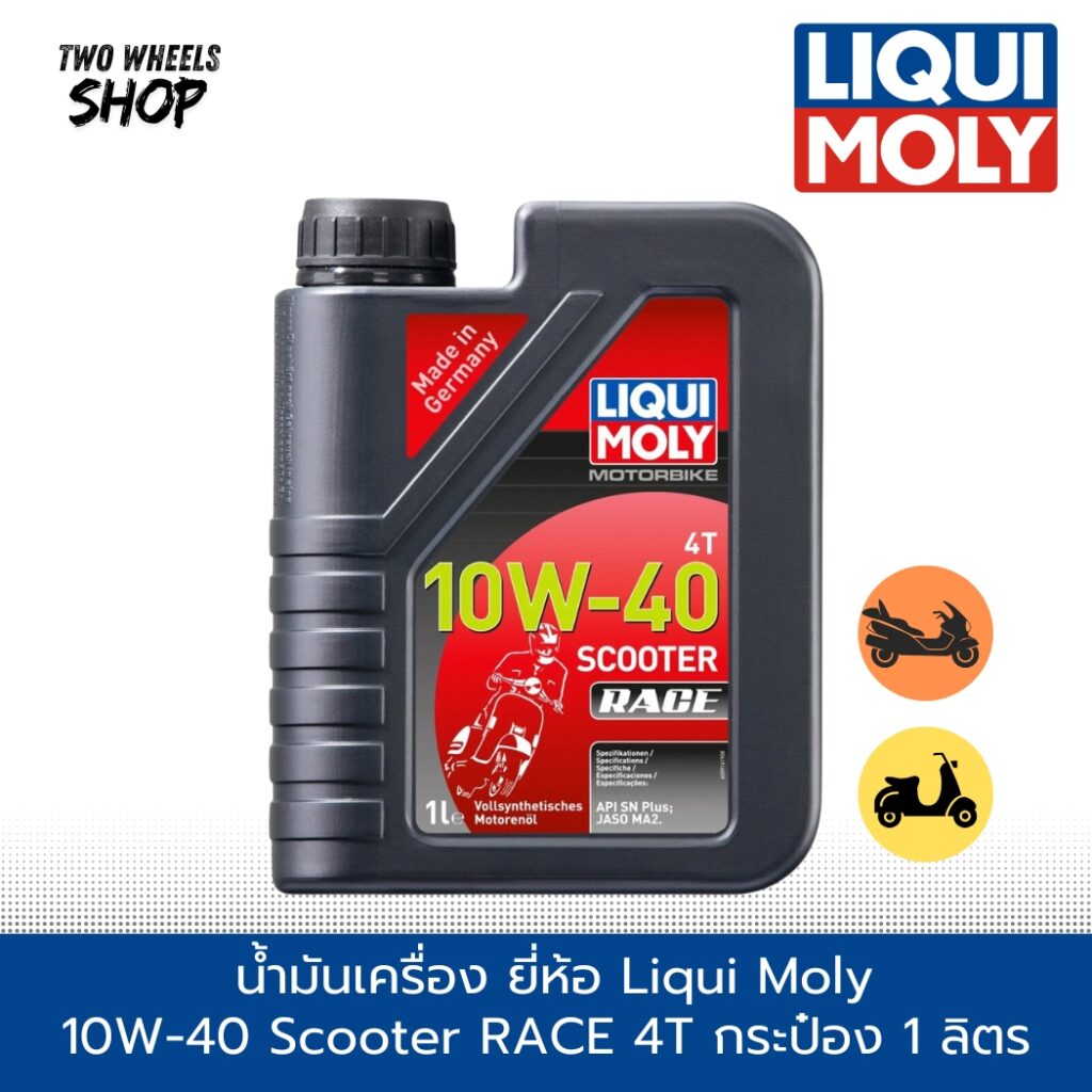 น้ำมันเครื่อง ยี่ห้อ Liqui Moly 10W-40 Scooter RACE 4T กระป๋อง 1 ลิตร 20826 เกรดสังเคราะห์แท้
