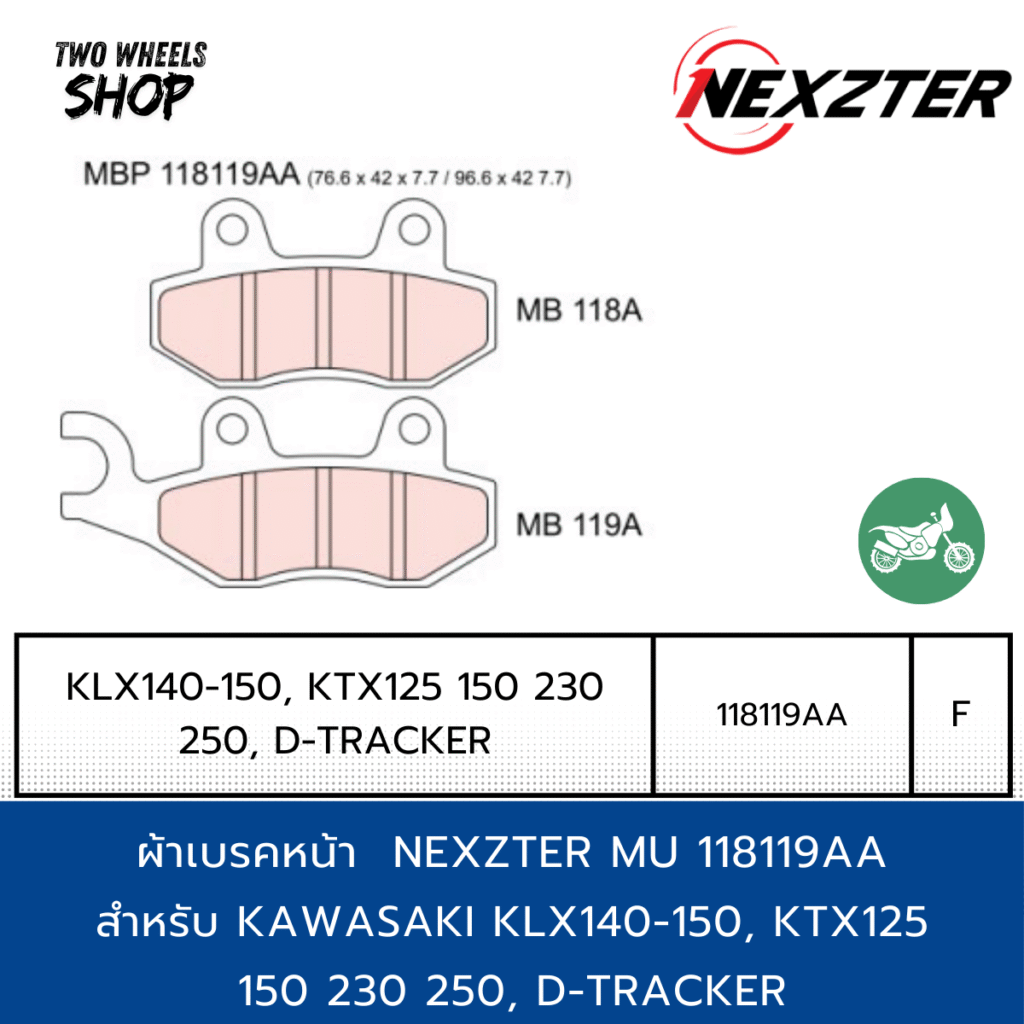 ผ้าเบรค Nexzter รุ่น Next 118119AA ผ้าเบรคสำหรับ KAWASAKI KLX140-150, KTX125 150 230 250, D-TRACKER (F)