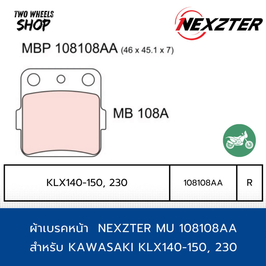 ผ้าเบรค Nexzter รุ่น Next 108108AA ผ้าเบรคสำหรับ KAWASAKI KLX140-150, 230 (R)