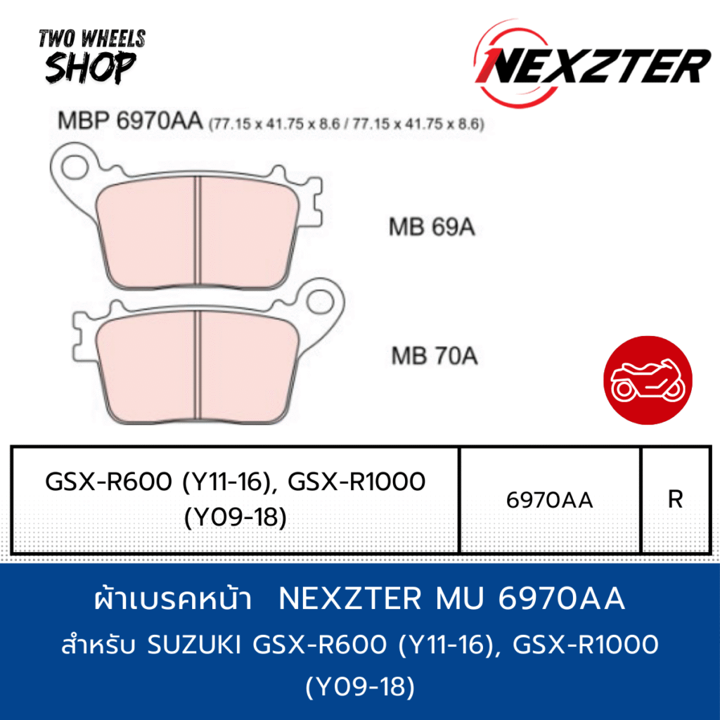 ผ้าเบรค Nexzter รุ่น Mu 6970AA ผ้าเบรคสำหรับ SUZUKI GSX-R600 (Y11-16), GSX-R1000 ปี2009-2018 (R)