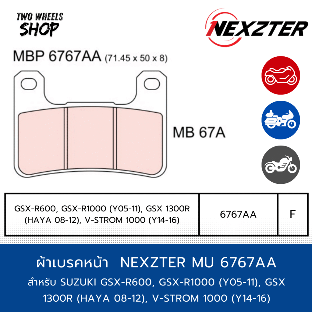 ผ้าเบรค Nexzter รุ่น Mu 5051AA ผ้าเบรคสำหรับ SUZUKI GLADIUS ABS06-16, V-STROM ABS ปี2004-2013 (R)
