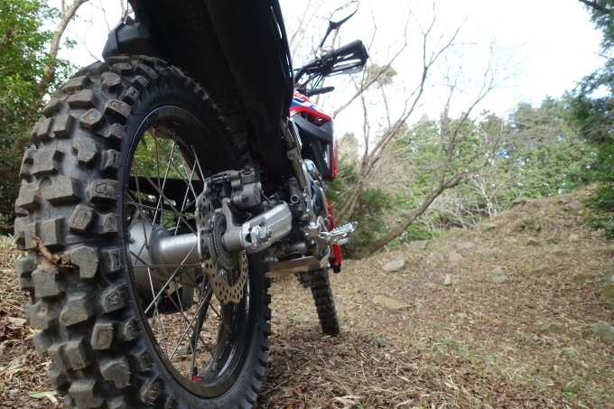 – โดยปรับลวดลายดอกยางเพื่อเพิ่มความมั่นคงในทางฝุ่นและความนุ่มนวลเมื่อล้มโค้งบนถนนเรียบ