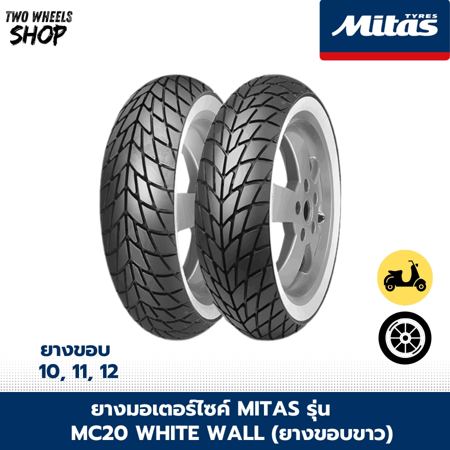 ยางมอเตอร์ไซค์ Mitas รุ่น MC20 WW (ยางขอบขาว) ขอบ 10, 12 นิ้ว