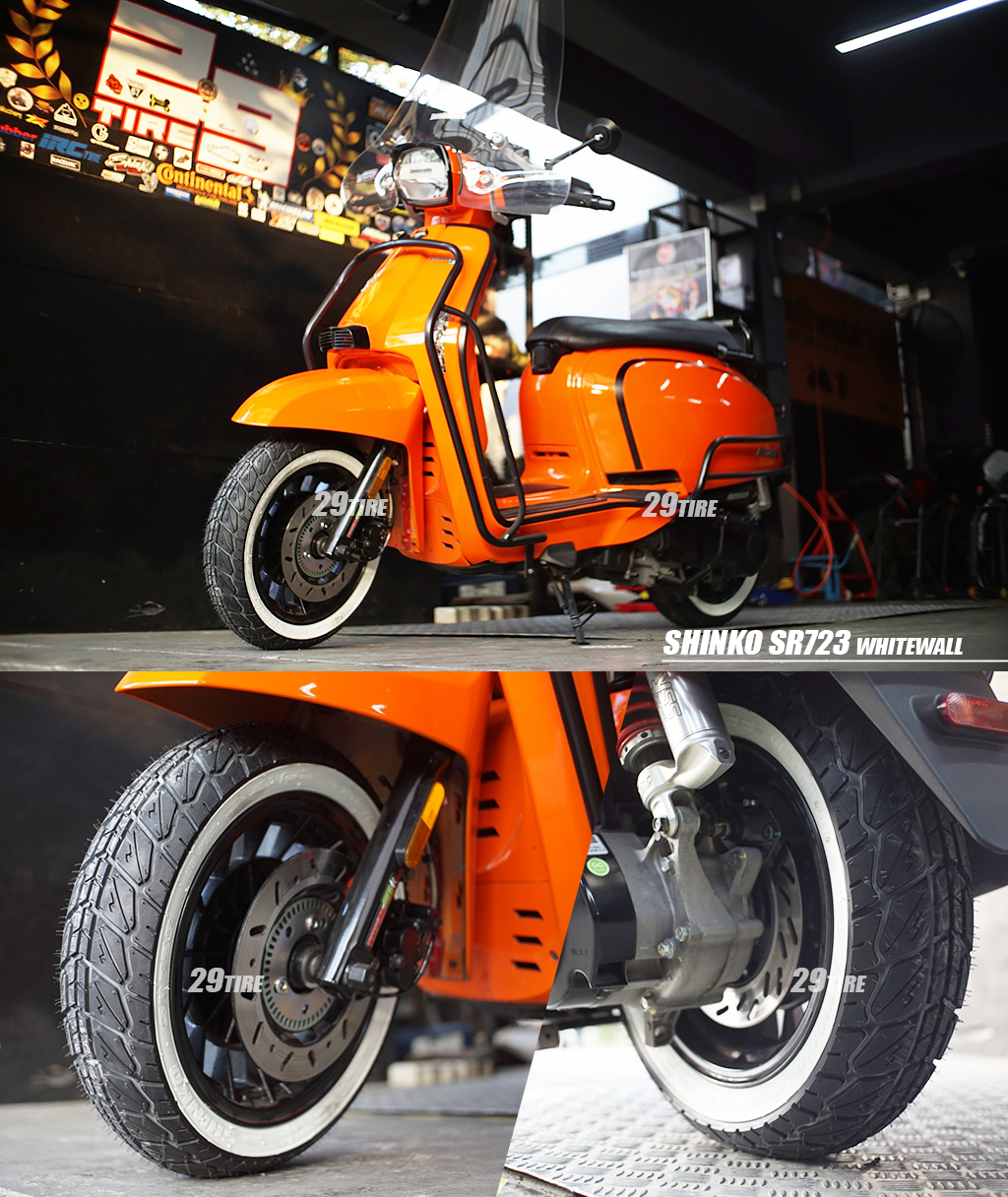 – เป็นยางสกู๊ตเตอร์ขนาดเส้นผ่านศูนย์กลาง 12 นิ้วจาก Shinko ที่มีเรตติ้งความเร็วสูงสุด 93 ไมล์ต่อชั่วโมง (มาตรฐาน P)